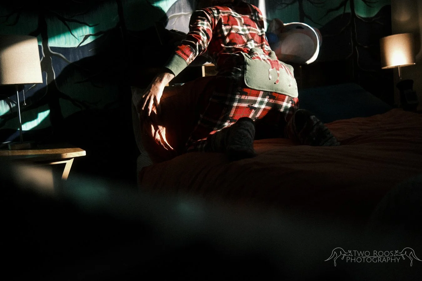 I have this cute little onesie that’s kinda cosy and Christmas-y and has a flap on the butt. I knew I wanted to capture my butt through the open flap. I also wanted incorporate my Christmas tree to help build holiday vibes and lean in into a “I’m all alone on Christmas, I wish you were here” story. I also knew I wanted to shoot in colour- crazy, I know.